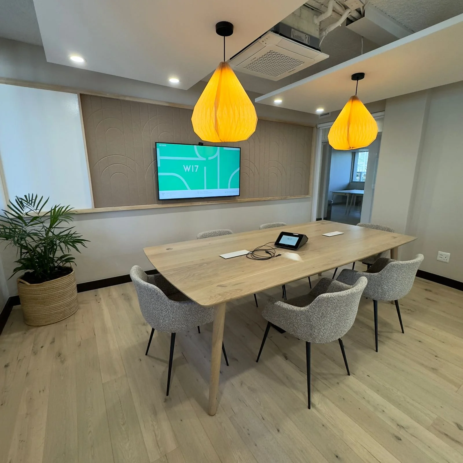 Table and chairs, Wifi, writable wall, VC functionality